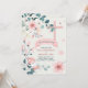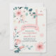 Baby Girl Peach Blossoms and Teal Christening Invitation