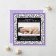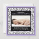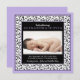 Baby Girl Photo Purple Damask Birth Announcement