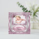 Baby Girl Pink Christening Baptism Cross White Invitation