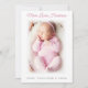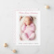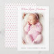 Baby girl photo pink dotted birth Announcement Card featuring your favourite newborn photo on the front. A White gradient photo overlay are softening the edges of the photo - this effect can be turned off inside the design tool.