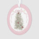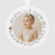 Celebrate a milestone you’ll treasure forever with this sweet Baby’s First Christmas Ornament. Designed with a soft pink border and delicate watercolor details, one side features a festive Christmas tree topped with a ribbon bow and personalized with your baby’s name and year. The reverse side showcases your favorite photo, framed with matching ornaments, greenery, and bows. Capture the magic of your little one’s first holiday season with a personalized ornament that will sparkle on your tree year after year.