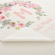 Cute and girly pastel pink watercolor floral and sage green leaves wreath monogram baby girl sherpa blanket. Personalise with your child's initial, name, and birth date. Perfect new baby gift.