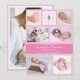 This modern and classic multiple photo pink baby girl birth announcement features seven of your own photos - six on the front in a lovely photo collage, and one on the back with your family name monogram initial inside of a pink classic wreath. Features a place for you to put her birth stats, your own greeting, and sentiment. This is the perfect card to send your loved ones to announce the arrival of your little one!