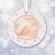 Here's an adorable photo template ornament that can be given at Christmas or anytime during the year at the time of Baby's birth. The front features your own photograph inside of a circular pattern frame. The frame is filled with teddy bear and balloon images, with an inner liner of pink. The back of the ornament has the same frame with a white interior, and two text fields for you to customise. A beautiful keepsake!