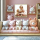 Baby Girl Reading Tan Puppy Red Mushroom Poster