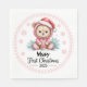 Add a personal touch to your holiday party with these baby girl’s first Christmas napkins. Featuring “[Name]’s First Xmas” (editable), they are perfect for serving treats at Christmas gatherings, milestone parties, or as a festive keepsake.