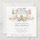 Mint green reverse side with an triangle mountain and arrow design, can be changed to match your colour palette. Square Format for a unique, stand out baby shower invitation theme. Hand painted in watercolor by artist and designer, Audrey Jeanne Roberts. Painterly pastel blue and pink roses form a wreath with sage and gold foliage. Inside the wreath is the typography text design "let the adventure begin" with a boho teepees on either side. Copyright, Audrey Jeanne Roberts.