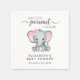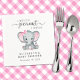 Cute napkins for your baby girl shower with "A Sweet Little Peanut Is On Her Way" written in a mixture of soft grey typography and a stylish script, and a pastel pink watercolor of a baby elephant. Personalise the mother-to-be's name and shower date in simple grey typography.