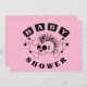 Cute pink skull and crossbones with Mohawk and BABY SHOWER text for baby girl.