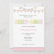 She's finally here and cute as can be, please join us for a sip and see! Cute sip and see invitations to welcome a baby boy, with pink, green and yellow baby blocks and bunting in a polka dot pattern.