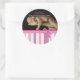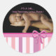 It's a Girl! Our Precious Little Pearl. Baby Girl Announcement Sticker with Pink Purple and Coral Stripes and a cute Pink Bow with your cute adorable baby girl photo!
