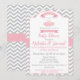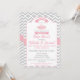 Step into a world of grace and elegance as you celebrate the imminent arrival of your baby with a Tutu Cute Baby Shower! Enjoy a whimsical gathering filled with pirouettes of joy and leaps of excitement. Get ready to plié into an enchanting day filled with laughter, love, and anticipation. 5x7 invitation with full colour back, pink and grey (grey) chevron design with pink calligraphy and pink tutu on hanger.