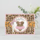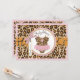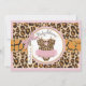 Cheetah print with pink accents and tutu on clothesline with 3D-look bow and ribbon for a girl baby shower invitation card.
