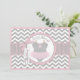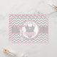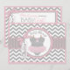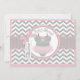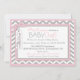Grey and white chevron print with pink accents and a polka dot jumper tutu with 3D-look bow and giraffe tag for a girl baby shower invitation card.