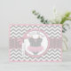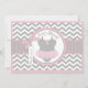 Grey and white chevron print with pink accents and a polka dot jumper tutu with 3D-look bow and ribbon for a girl baby shower invitation card.