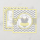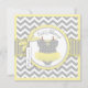 Sweet polka dot print jumper tutu on clothesline and 3D-look bow and ribbon for a girl baby shower invitation card. Colours are yellows and greys.