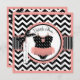 Black and white chevron print with coral pink accents and a polka-dot jumper tutu and 3D-look bow and ribbon thank you card.
