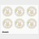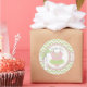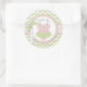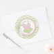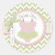 Green, pink, and white chevron print with pink tutu on clothesline and 3D-look polka-dot bow and stripe print ribbon trim and pink accents thank you gift label.