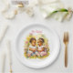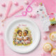 Cute baby twin girls of colour pink floral baby shower paper plates. Watercolor baby girls sitting in pink flowers. It's twins!
