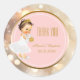 Baby Girl Winter Baptism Favour | Pink Gold Bokeh Classic Round Sticker