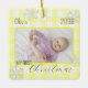 A square Christmas ornament decorated with a yellow plaid and snowflakes. Personalise it with a photo, the name and the year to make a perfect gift for new parents or a beautiful keepsake for any family.