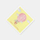 Personalised, cheerful Yellow and pink, One year Baby girls Birthday party napkins with watercolor illustration of cute Bunny Rabbit in hot air balloon. perfect for spring birthdays.
