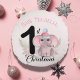 Baby Girl's 1st Christmas Cute Pink Elephant Name Round Cushion