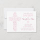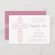 This 3.5"x 75" elegant baby baptism or christening card features an ornate drawn pink cross and a white background. Perfect for a baby girl's special religious occasion.