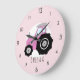 Baby Girl's Doodle Pink Farm Tractor Car Nursery Large Clock