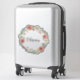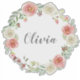 Handwriting script style personalised name inside of a watercolor painted, round wreath of blush pink peonies and white roses with contrasting deep burgund flowers and berry clusters over green leaf foliage. A complete, mix and match set of elements are available. Copyright, Audrey Jeanne Roberts.