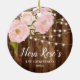 Baby Girl's Personalised 1st Christmas Wood Floral Ceramic Ornament. Personalise with your custom information on both front and back.