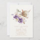 This cute girl baby shower invitation features a baby goat/kid with purple flowers in watercolor. The reverse side features a light tea green background with purple lilac floral patterns. Personalise it for your needs. You can find more bunny products at my store.