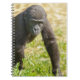 A baby gorilla is depicted in the image, standing amidst ground leaves