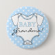 This adorable badge or pin back button tells all your baby shower guests "I'm the Grandma". Blue and white polka dots background with a blue baby onsie jumper t-shirt outfit thingy, and the word "BABY". Personalise this badge for all family relatives! Perfect for sister, aunt, great grandmother, God mother or MOMMY! Make one for everyone! This image is available in other colours! Please visit my store "The Hungarican Princess" at www.zazzle.com/hungaricanprincess* and look in my "Oh Baby" category department. Congratulations!