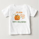 This adorable baby t-shirt is perfect for your little one's Halloween Party 😊! It features a happy pumpkin, the text "Happy Halloween", "Cute Pumpkin", and hearts and stars. The bodysuit can be customised with your child's name.