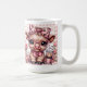 This pretty, personalised baby highland cow coquette style mug will make the perfect gift for any girl on your list - mum, daughter, friend, teacher, neighbour etc. The sweet design features a precious baby girl highland cow in coquette style with a leopard print pink bow on her head and another large pink bow around her neck. She wears pink rimmed glasses on her furry face and has large brown eyes. The background is pink and white gingham checks and roses with pink heart embellishment. Beside her is a clear iced coffee cup complete with lid, straw and cup holder. Customise the text template area in the centre of this mug for a name or word of your choice. I created this colourful piece utilising generative artp plus my own graphic design skills. I love it and hope you like it too!