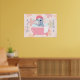It's bath time and here's an adorable baby hippo sitting in a pink bath tub and wearing a pink turban, taking a bubble bath to keep you company!  There's a pretty wallpaper of flowers in the background.