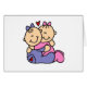 Two baby girls, one wearing a purple sleeper, the other wearing a pink sleeper give each other big hugs on our Baby Hugs T-shirts, tote bags, cards, buttons, and other items!