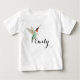 This cute shirt is featuring a ruby-throated hummingbird. The font style and size can be changed by clicking on "customize further".