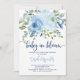 Baby in Bloom blue watercolor floral Baby Shower invitation for baby boy