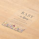 A beautiful watercolor floral border of wildflowers decorates the bottom edge of this trendy boho baby shower invitation. The words "Baby in bloom" appear in serif and script fonts, with swashes before and after the script. Personalise the text with the name of the mum-to-be and the shower details in charcoal grey on a clear arch-shaped background.