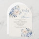 Baby in bloom boy blue floral shower invitation. Easy to change the text. Pretty watercolor blue floral on arch invitation.
