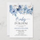 Baby In Bloom Dusty Blue Floral Flower Baby Shower Invitation