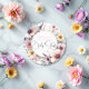 Celebrate your baby shower in style with this Baby in Bloom floral sticker, featuring soft pastel blooms in pink, lavender, and cream. Perfect for sealing invitations, decorating party favours, or adding a personalised touch to baby shower décor. Customise with the mum-to-be’s name and shower date for a unique keepsake. Ideal for garden-themed, botanical, or elegant floral baby showers