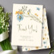 Delicate wildflowers meadow bouquet with butterflies and pastel watercolor floral blooms elegant chic spring or summer garden baby in bloom baby shower thank you printable card with whimsical trendy modern calligraphy script over a cream ivory background. Wildflower pattern on the backside. Digital download available.
