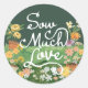 Our Baby in Bloom garden-themed baby shower thank-you sticker is the perfect way to show your appreciation with a touch of charm and whimsy. Designed by Moodthology Papery, this heartfelt sticker features hand-painted gouache illustrations of vibrant florals, potted plants, and lush greenery — all delicately arranged to frame the sweet message “Sow Much Love.” With its playful, botanical design and whimsical typography, it's a beautiful finishing touch for favour bags, envelopes, gift boxes, or thank-you cards. Ideal for spring or summer baby showers with a garden, greenhouse, or floral theme — especially for moms-to-be who adore nature and blooming beauty. Hand-painted gouache artwork & design by © Moodthology Papery.