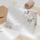 This design features delicate watercolor peonies and roses in a stunning palette of dusty blue, light pink, and white, creating a soft and elegant look for your “Baby in Bloom” baby shower.