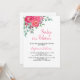 This pretty Baby Shower Invitation features watercolor roses and flowers in shades of pink and purple with eucalyptus and greenery.
