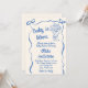 If you looking for an elegant unique and easy customisable baby shower invitation this is perfect for you. As you see it features a retro handwritten script and hand drawn flowers bouquet. That features a hand drawn ribbon bow frame border. All in blue on creamy background. Very easy to customise and use. So grab it and male your invites very engaged.