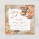 Whimsical watercolor dried terracotta hydrangeas and palm leaves floral girl "Baby Girl Is in Bloom" Baby Shower "Diaper Raffle" design with a cute little fox on a faux watercolor desert sand look background on front and a solid light terracotta on back. Composite design by Holiday Hearts Designs (rights reserved).